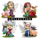 - The fairy figurines feature delicate patterning on their wings, metallic and pearlescent accents, hand-applied glitter on their dresses and tinted faux gems